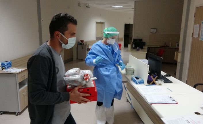 İkram karşısında şaşıran sağlık çalışanları emeği geçen iş insanlarına teşekkür etti.