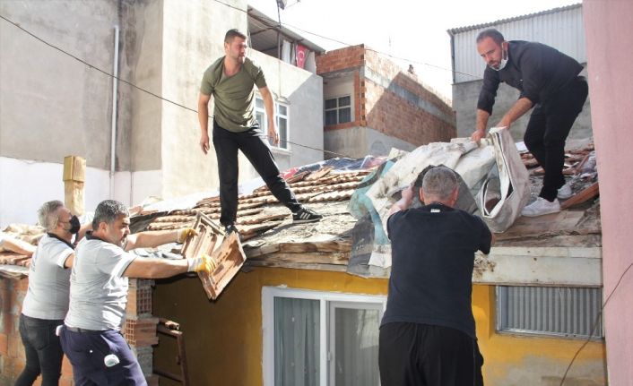 Samsun’da mahalle sakinleri ve belediye personeli yaşlı kadının akan çatısının onarımı için seferber oldu.