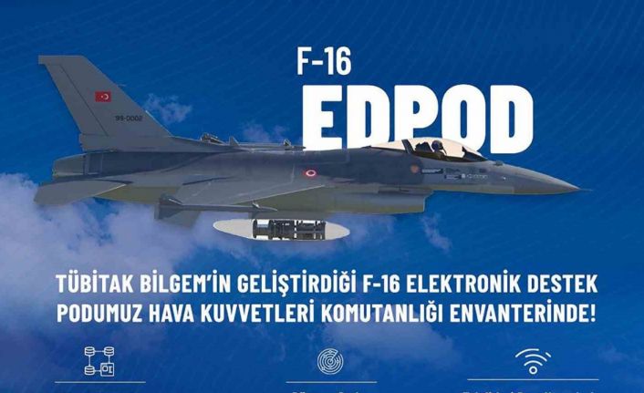 Sanayi ve Teknoloji Bakanı Mehmet Fatih Kacır, TÜBİTAK Bilişim ve Bilgi Güvenliği İleri Teknolojiler Araştırma Merkezi (BİLGEM) ana yükleniciliğinde geliştirilen Elektronik Destek Podunun (EDPOD), gerçek radar sistemlerine karşı uçuşlu testleri başarı ile tamamlayarak Hava Kuvvetleri Komutanlığı envanterine girdiğini açıkladı.