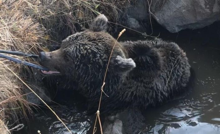 Ekipler yaralı ayıyı uyuşturucu iğne ile sakinleştirerek kamyonet ile Doğa Koruma ve Milli Parklar Müdürlüğü’ne götürdü.