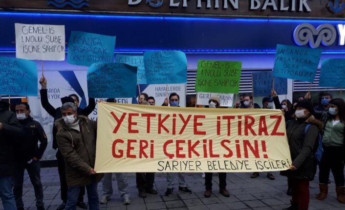Sarıyer Belediyesinde çalışan işçiler, yenilenmeyen toplu sözleşme için ilçe meydanında toplanarak belediyeyi protesto etti.