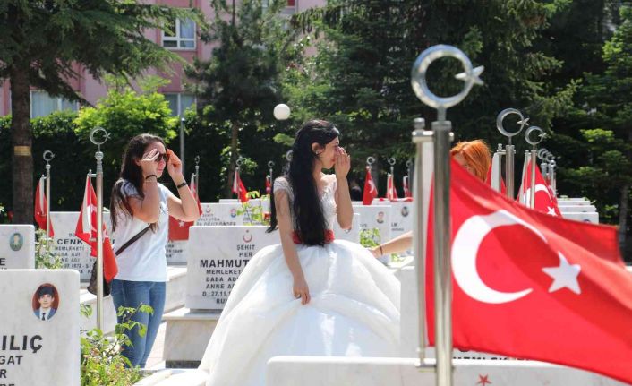 Ankara’daki Cebeci Askeri Şehitliği’nde, Babalar Günü nedeni ile duygusal anlar yaşandı. Sevdiklerini toprağa veren şehit yakınları, bu özel günde kahramanları mezarları başında, dualar eşliğinde andı. Sabahın ilk saatlerinde Cebeci Askeri Şehitliği’ne gelen ve ’şehit babaları’ yalnız bırakmayan aileler içerisinde bir kişi ise herkesin dikkatini çekti. Gelinliği ile şehitliğe gelen bir şehit kızı, babasının mezarı başında gözyaşlarını tutamadı. Duygusal anların da yaşandığı şehitlik, gün boyu ziyaretçiler ile doldu taştı.