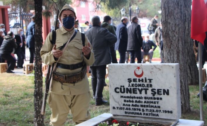 Burdur Valiliği, Garnizon Komutanlığı ve Belediye Başkanlığı ve Muharip Gaziler Derneği’nin şehitlikte bulunan Atatürk Anıtı’na çelenk bırakması ile başlayan tören İstiklal Marşı’nın okunması ve Tank Yüzbaşı Murat Evran’ın günün anlam ve önemini anlatan konuşması ile devam etti.
