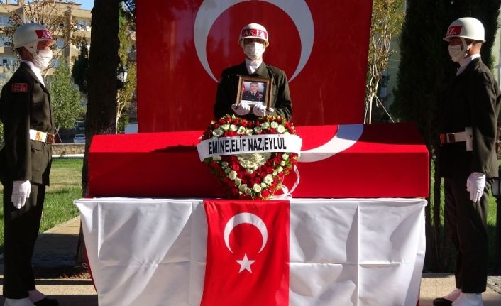 Cenaze töreni sonunda Milli Savunma Bakanı Hulusi Akar, şehit eşi Emine Erdoğan ve kızları Elif Naz ile Eylül’e, Türk bayrağını teslim etti. Aile üyeleri de öperek Türk bayrağını teslim aldı.