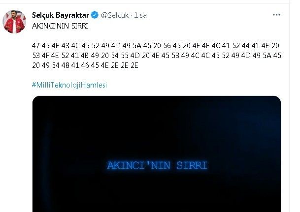 Cumhurbaşkanı Erdoğan’ın mesajının yer aldığı video, Baykar Teknik Müdürü Selçuk Bayraktar’ın sosyal medya hesabından "AKINCI’nın sırrı" başlığıyla da paylaşıldı.