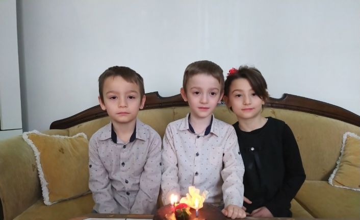 Korona virüs tedbirleri kapsamında okullar kapanınca sokağa çıkma kısıtlaması bulunan üçüz öğrenciler Erdal, Erdem ve Elif Cört (7) kardeşler, öğretmenlerinin doğum gününü görüntülü arama yaparak kutladı.
