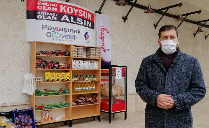Korona virüs dolayısıyla maddî sıkıntı çeken ve erzak ihtiyacı duyanlar için belediye binası yanında raflar oluşturuldu. İhtiyaç sahiplerine gıdadan temizlik maddelerine kadar malzeme desteği sunuluyor. ’İmkanı olan koysun, ihtiyacı olan alsın’ ve "Paylaşmak güzeldir’ sloganı ile başlatılan yardım kampanyasına esnaf ve vatandaşlar da destek veriyor. İsteyen vatandaşlar belediyeye talepte bulunarak malzeme konmasını istiyor, isteyen vatandaşlar da koymak istedikleri ürünleri raflara yerleştiriyor.