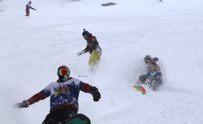 Artvin’de 2 bin 400 rakımlı Sahara Milli Parkı adrenalin tutkunlarının gözdesi haline geldi. Yoğun kar yağışıyla birlikte tulum eşliğinde snowboardlarıyla kayan macera tutkunları adrenalini doruklarda yaşadı.