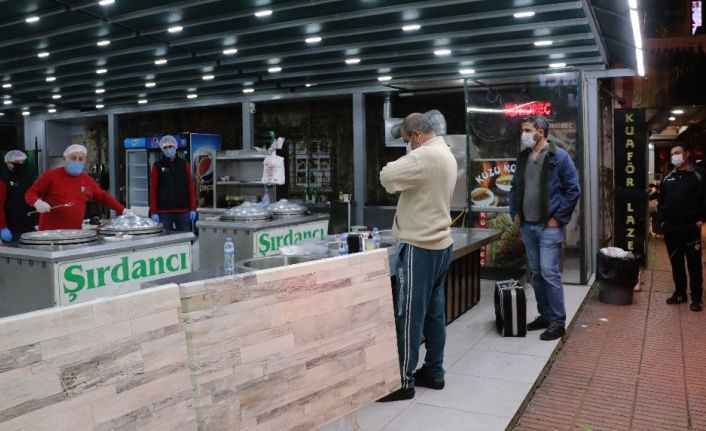 Yeni tip korona virüs salgını önlemleri nedeniyle yemek yenilen yerleri kapsayan sadece gel al veya paket servis kuralı Adanalıların şırdan aşkına engel olamadı. Kentte en çok tüketilen yemeklerin başında gelen şırdan için Adanalılar sosyal mesafe kuralına uygun halde sıraya girip şırdanlarını alıyor. Tır şoförü olan ve Türkiye’ye yeni giriş yapan bir vatandaş da evine gitmeden elinde pasaport ve valizi ile şırdancının önünde sıraya girip şırdanını aldı.