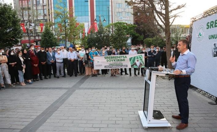 Anma programında konuşan Belediye Başkanı Hasan Tahsin Usta, “Dünyanın gözü önünde Avrupa’nın tam göbeğinde, ABD’nin ve Birleşmiş Milletler’in de desteğiyle altını çiziyorum bir soykırım, bir insanlık katliamını bizlerin de yaşadığı bir dönemde ne yazık ki geride bıraktık. Şehitlerimizi rahmetle anarken onların bize yüklemiş olduğu sorumluluğu ve önemli vazifeyi de hatırlamak zorundayız. Tıpkı Bosna Hersek’in Bilge Komutanı Aliya İzzetbegoviç’in Sayın Cumhurbaşkanımıza ölüm yatağında ‘Bosna’yı size emanet ediyorum’ dediği gibi biz de Srebrenitsa’da şehit olan ve onların temsilcileri olan tüm soydaşlarımızın yanındayız. Bizim öyle bir sorumluluğumuz var ki bugün olmazsa yarın, yarın olmazsa bir gün mutlaka bu kardeşlerimizin hesabını sormalıyız” dedi.