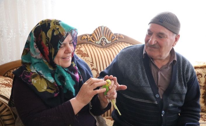 Sivas’ta Korona virüs (Covid-19) dolayısıyla eve kapanan yaşlı çiftin yüzü, muhabbet kuşlarıyla güldü.