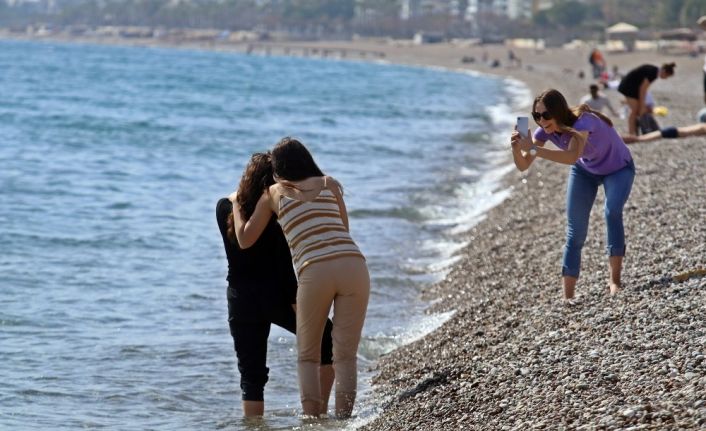 Antalya’da kısıtlamadan muaf tutulan turistler, Şubat ayının son gününde denizin ve güneşin tadını çıkardı.