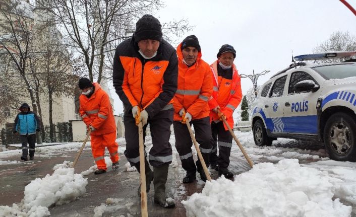 Kar küreme ve tuzlama çalışması yaptıklarını dile getiren belediyenin temizlik işçilerinden biri, “Saat 07.00’da başlıyoruz, sabah erkenden işimizin başındayız. Hafta sonu kısıtlaması olmasına rağmen belediye olarak, hizmete devam ediyoruz. Aksatmadan işlerimizi yapıyoruz. Yani neticede biz bunları yapmak zorundayız, biz yapmazsak vatandaş hizmet alamaz. Biz de görev başında olmak zorundayız” diye konuştu.