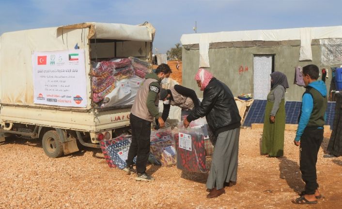 Kuveyt merkezli Sheik Abdullah Al Nouri Vakfı tarafından Suriye’nin kuzeyindeki sığınmacı kamplarında yaşayan savaş mağduru ve ihtiyaç sahibi sivillere 750 adet gıda kolisi ve bin 730 adet battaniye yardımı yapıldı.