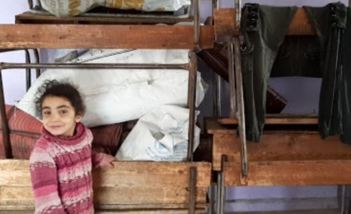 Suriye’nin İdlib bölgesine Esad rejiminin düzenlediği saldırılardan kaçan siviller, kalacak yer bulmayınca boş bir okula sığındı.