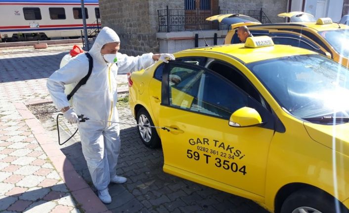 Korona virüs salgınının ülkemizde görülmesinin ardından Tekirdağ’daki taksilerde ve taksi duraklarında dezenfekte çalışması başlatıldı.