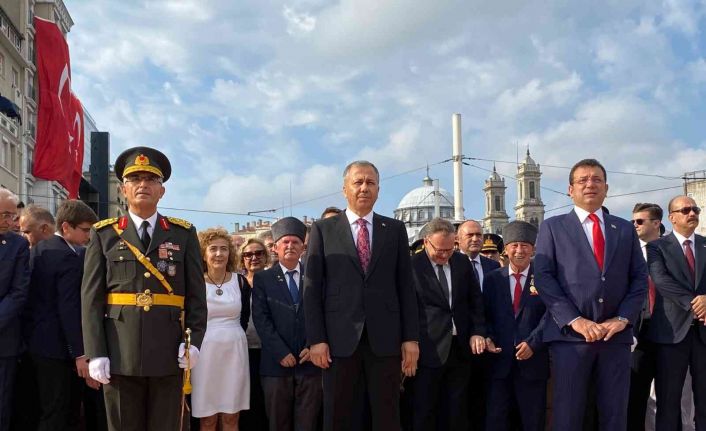 30 Ağustos Zafer Bayramı’nın 100’üncü yıl dönümü kutlamaları çerçevesinde İstanbul Valiliği, 1. Ordu Komutanlığı ve İstanbul Büyükşehir Belediyesi tarafından Taksim Meydanı’nda bulunan Cumhuriyet Anıtı’na çelenk bırakıldı. Törene İstanbul Valisi Ali Yerlikaya, İstanbul Büyükşehir Belediye Başkanı Ekrem İmamoğlu, 1.Ordu Komutanı Orgeneral Ali Sivri, pek çok askeri personel ve vatandaş katıldı. İstanbul Valisi Ali Yerlikaya’nın Cumhuriyet Anıtı’na çelenk bırakmasıyla başlayan tören, 1.Ordu Komutanlığı ve İstanbul Büyükşehir Belediyesi çelenklerinin bırakılmasıyla devam etti. Zafer Bayramı kutlamaları çerçevesinde düzenlenen tören, İstiklal Marşı’nın okunması ve saygı duruşunda bulunulmasıyla sona erdi.