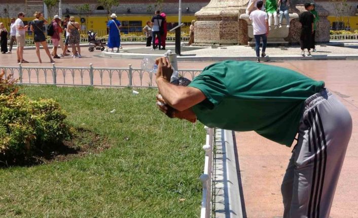 İstanbul Taksim’de sıcaktan bunalan vatandaşlar serinlemek için çeşitli yollar denedi. Bazı vatandaşlar gölgelik yer ararken, kafasını süs havuzuna sokarak serinlemeye çalışan kişi ilginç bir görüntü oluşturdu.