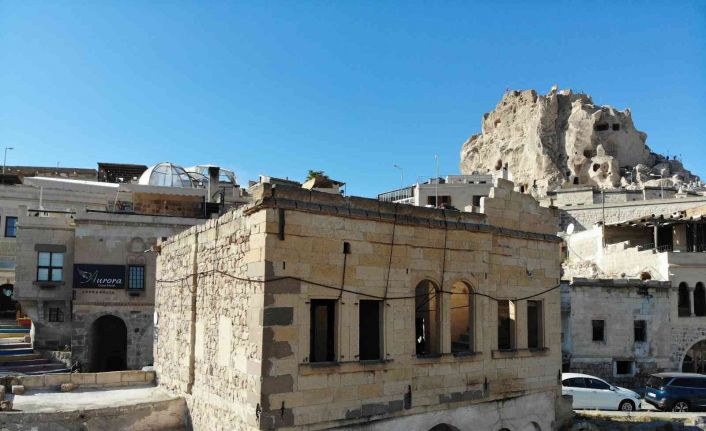 Nevşehir’de 1 asırlık olan tarihi binanın zincirlerle koruma altına alınması görenleri şaşırtıyor.