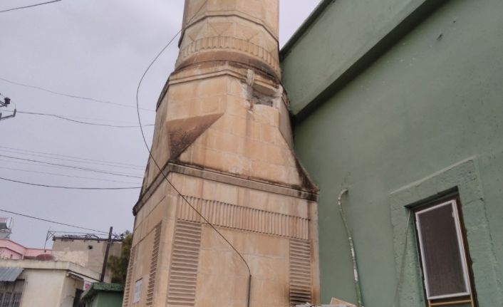 Mersin’in Tarsus ilçesinde yıldırım caminin minaresine isabet etti.