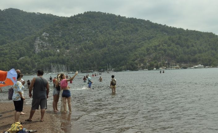 Muğla’nın Marmaris ilçesinde bulunan Kızkumu Plajı havanın kapalı olmasına rağmen doldu taştı. Sosyal mesafe kurallarına uyulmadığı ve maske kullanımının da azınlıkta olduğu plajda yerli ve yabancı turistler hem yüzdü hem de bol bol hatıra fotoğrafı çektirdi. Bu görüntü akıllara tatil sevdasının korona virüsü unutturduğunu getirdi.