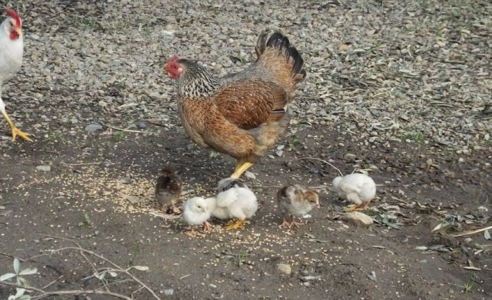 Burhaniye ilçesinde, Sabri Aydınlıgil ve eşi Aydan Aydınlıgil’e ait çiftlikte bakılan Kınalı adlı tavuk kış ortasında civciv çıkardı. Ortadan kaybolan tavuğun 22 gün sonra arkasında 6 civciv ile ortaya çıkması sahibine büyük bir sürpriz yaşattı. Kınalı ve civcivlerine gözü gibi baktığını anlatan Sabri Aydınlıgil, yavruların yaza kadar büyüyeceklerini söyledi.
