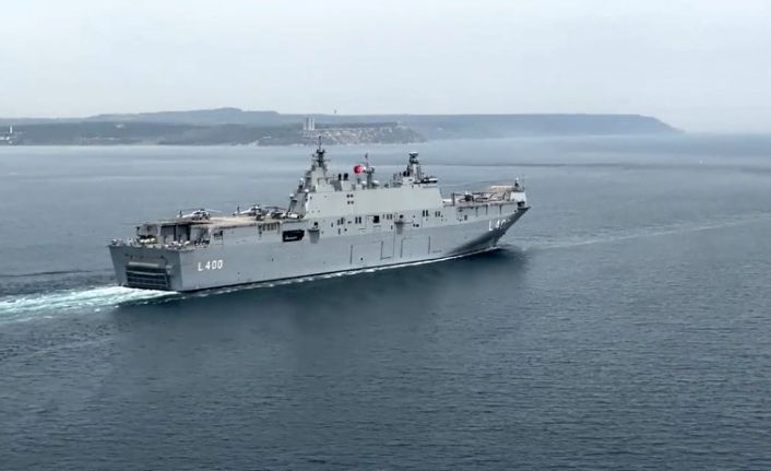 Dünyanın ilk silahlı insansız hava aracı (SİHA) gemisi ve Türkiye’nin en büyük askeri gemisi olan TCG Anadolu, Çanakkale Boğazı’ndan geçişi sırasında Şehitler Abidesi ile şehitleri ve Çanakkale halkını selamladı.