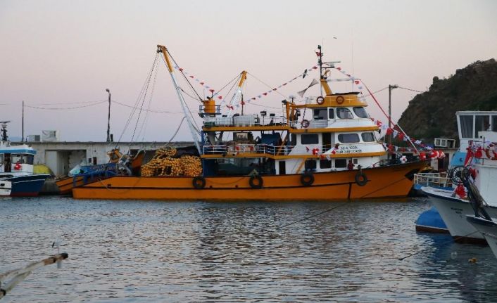 Tekirdağ’da 2019-2020 av sezonunun açılışı nedeniyle Kumbağ Mahallesi’ndeki balıkçı barınağında düzenlenen törende balıkçılar ‘Vira bismillah’ dedi. .