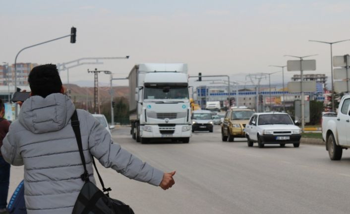 Kırıkkale’de ’korona virüsü’ tedbirleri kapsamında üniversitelerin tatil edilmesinin ardından otogarlarda bilet bulamayan öğrenciler, çareyi otostop çekmekte buldu.