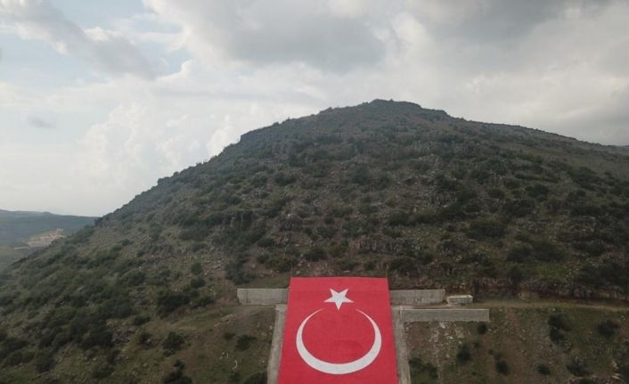 Suriye’nin Afrin kentindeki Darmık dağında bulunan ve Zeytin Dalı Harekatı sırasında TSK tarafından bombalanan terör örgütü elebaşı Öcalan portresinin yerine dev Türk bayrağı yapıldı.