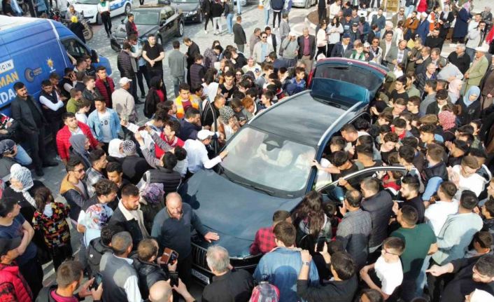 Togg, Bolvadin’de görücüye çıktı. Çarşı Meydanı’na getirilen Togg’u görenler fotoğraf çektirmek için adeta birbirleri ile yarıştı. Aracın içerisine girerek inceleyen vatandaşlar, yetkililerden aracın donanımı hakkında da bilgiler aldı. Yoğun bir kalabalığın olduğu tanıtımda, vatandaşların Togg’a olan ilgisi dron ile de görüntülendi.