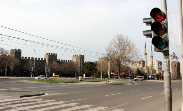 Kayseri’de korona virüs tedbirleri kapsamında trafik sinyalizasyon sistemiyle vatandaşlara "Evde kal" çağrısı yapıldı.