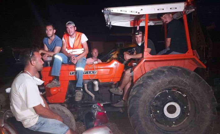 Muğla’nın Marmaris ilçesinde devam eden orman yangınında Hisarönü Mahallesi’nin gençleri, alevlerin evlerine sıçramaması için traktör üstünde yangın nöbeti tutuyor.