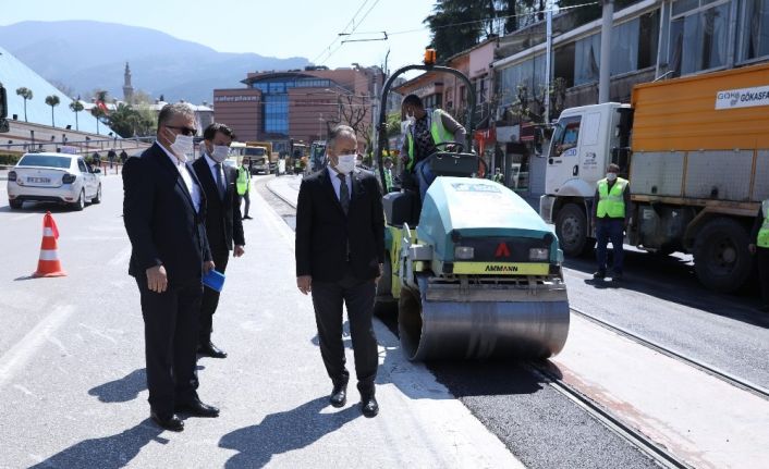 Bursa Büyükşehir Belediyesi, enerjisinin büyük bir bölümünü ‘Covid 19’ salgını ile mücadeleye ayırırken, diğer taraftan tüm belediyecilik hizmetlerini de kesintisiz sürdürüyor. Bursa’nın en önemli gündem maddesi olan trafik ve ulaşımla ilgili yatırımlarını korona salgınıyla mücadeleye rağmen durdurmayan Büyükşehir Belediyesi, yaklaşık 7 yıldır hiçbir bakımın yapılmadığı T1 tramvay hattı güzergahında kapsamlı bir bakım ve tadilat çalışması başlattı. Kent Meydanı - Heykel arasındaki yaklaşık 6,5 kilometrelik hattı kapsayan çalışmalar Altıparmak Caddesi’nden başladı ve trafiğin de bölgede azalmasıyla hızla sürdürülüyor.