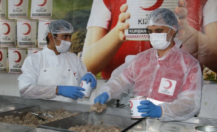 Bu yıl 4 milyon insanı kurban etinden yararlandırmayı hedefleyen Kızılay, vekaletle kesilen kurbanların konserve haline getirildiği tesisin tanıtımını gerçekleştirdi. Hijyen şartlarının ön planda tutulduğu tesiste dev kazanlarda pişirilen etler el değmeden ambalajlanarak ihtiyaç sahipleri için hazır hale getiriliyor. Tesisin tanıtımında açıklamalarda bulunan Türk Kızılay Genel Başkanı Dr. Kerem Kınık, Cumhurbaşkanı Recep Tayyip Erdoğan’ın talimatı ve Tarım ve Orman Bakanlığının yardımlarıyla bu sene bütün kurbanlıkları yerli besicilerden temin ettiklerini belirtti. Kınık, “Satın almalar yapıldı, hazırlıklar gerçekleştirildi ve vekaletle kurban kesim organizasyonumuz için yaklaşık 2 haftamız var. Kızılay’ın modeli biraz farklı, biraz özgün. Özellikle Kurban Bayramı sürecinde kesilen etlerin canlı bir şekilde dağıtımını yapmıyoruz. Kurban paylar bollaştığı için insanlarımız kırmızı eti tüketebildikleri için daha çok Kurban Bayramı sonrasında konserve haline getirilmiş olan kavurma ve kıymalarımızı ihtiyaç sahiplerine 81 ilde şubelerimiz aracılığıyla dağıtıyoruz. Bu işlem Et ve Süt Kurumumuzun hijyenik tesislerinde proseslerle gerçekleştiriliyor” dedi.