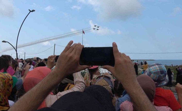 Türk Hava Kuvvetleri’nin akrobasi timi Türk Yıldızları’nın Rize semalarında yaptığı gösteri uçuşu yoğun ilgi gördü.