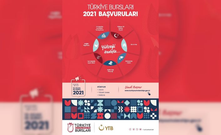 Dünyanın bütün ülkelerine açık olan Türkiye Bursları 2021 yılı başvuruları ise 10 Ocak - 20 Şubat 2021 tarihleri arasında alınacak. Başvurular; Lisans, Yüksek Lisans ve Doktora düzeyinde eğitim almak isteyen adaylara açık olacak.
