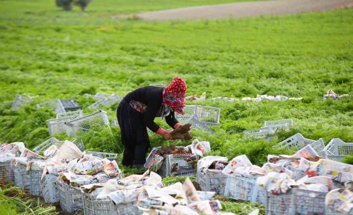 Sabahın erken saatlerinde tarlaya ulaşan işçiler, havuç sökümü yapıyor. Tarlada toplanarak kasalara doldurulan havuçlar, yıkama tesislerine gönderiliyor. Tesislerde önce geniş bir havuzda kaba temizliği yapılan havuçlar, daha sonra yıkama makinesinden geçerek, genellikle paketleme kısmına ulaşıyor.