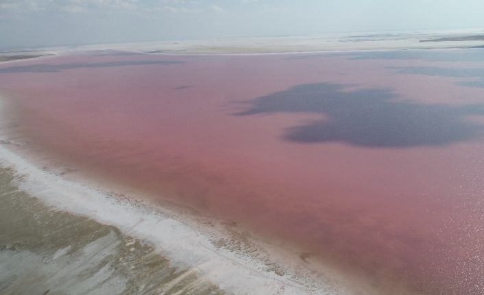 Türkiye’nin 2. büyük gölü olan Tuz Gölü, suyun içerisinde yaşayan algler ve bakteriler nedeniyle pembe renge büründü.
