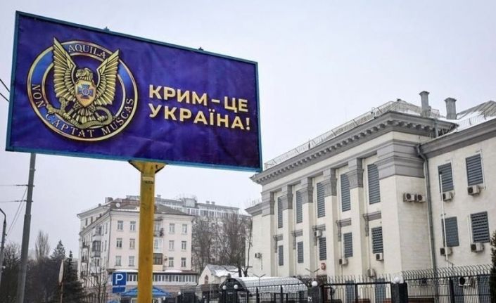 KİEV (İHA) – Ukrayna’nın başkenti Kiev’de bulunan Rusya Büyükelçiliği’nin çevresinde yer alan reklam panolarına "Kırım Ukrayna’dır" yazılı afişler asıldı.