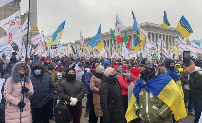 Ukrayna’da, karantina karşıtları ve yazar kasa kullanma zorunluluğunu kabul etmeyen işletmeciler tarafından 1 Aralık’ta başlatılan gösteriler, 22’inci gününde de hız kesmeden devam ediyor.