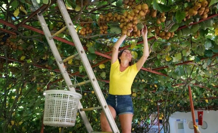 Doğal ve organik ürünlerden oluşan bir kahvaltı yaptıktan sonra bahçede uzunca bir vakit geçiren ziyaretçiler, kovalar dolusu kivi topladı.