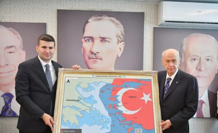 Ülkü Ocakları Eğitim ve Kültür Vakfı Genel Başkanı Ahmet Yiğit Yıldırım tarafından Milliyetçi Hareket Partisi (MHP) Genel Başkanı Devlet Bahçeli’ye hediye edilen ‘Denizlerdeki Misak-ı Millimiz’ adlı harita, NFT (Nitelikli Fikri Tapu) şeklinde düzenlendi.