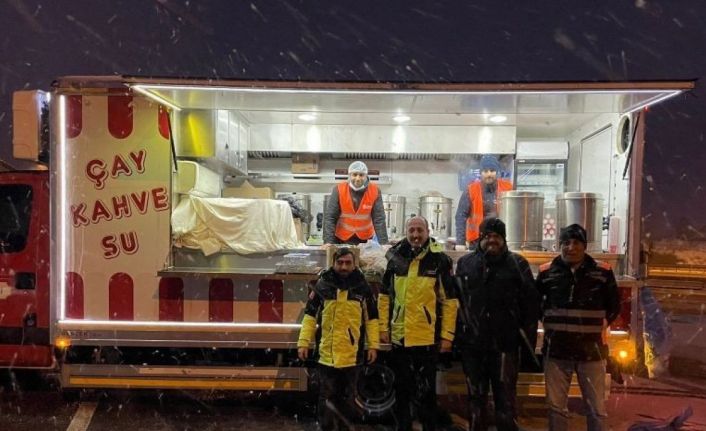 Ümraniye Belediyesi, dün gece etkili olan şiddetli kar yağışı nedeniyle yolda mahsur kalan vatandaşlara sıcak ikramda bulundu.