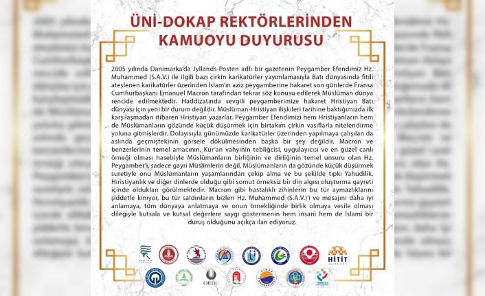 Açıklamada, “2005 yılında Danimarka’da Jyllands-Posten adlı bir gazetenin Peygamber Efendimiz Hz. Muhammed (S.A.V.) ile ilgili bazı çirkin karikatürler yayımlamasıyla Batı dünyasında fitili ateşlenen karikatürler üzerinden İslam’ın aziz Peygamberi’ne hakaret son günlerde Fransa Cumhurbaşkanı Emanuel Macron tarafından tekrar söz konusu edilerek Müslüman dünya rencide edilmektedir. Haddizatında sevgili Peygamberimize hakaret Hristiyan Batı dünyası için yeni bir durum değildir. Müslüman-Hristiyan ilişkileri tarihine baktığımızda ilk karşılaşmadan itibaren Hristiyan yazarlar, Peygamber Efendimizi hem Hristiyanların hem de Müslümanların gözünde küçük düşürmek için birtakım çirkin vasıflarla nitelendirme yoluna gitmişlerdir. Dolayısıyla günümüzde karikatürler üzerinden yapılmaya çalışılan da aslında geçmiştekinin görsele dökülmesinden başka bir şey değildir. Macron ve benzerlerinin temel amacının, Kur’an vahyinin tebliğcisi, uygulayıcısı ve en güzel canlı örneği olması hasebiyle Müslümanların birliğinin ve dirliğinin temel unsuru olan Hz. Peygamber’i, sadece gayri Müslimlerin değil, Müslümanların da gözünde küçük düşürmek suretiyle onu Müslümanların yaşamlarından çekip alma ve bu şekilde tıpkı Yahudilik, Hıristiyanlık ve diğer dinlerde olduğu gibi somut örneksiz bir din algısı oluşturma gayreti içinde oldukları görülmektedir. Macron gibi hastalıklı zihinlerin bu tür aymazlıklarını şiddetle kınıyor, bu tür saldırıların bizleri Hz. Muhammed’i (S.A.V.) ve mesajını daha iyi anlamaya, tüm dünyaya anlatmaya ve onun örnekliğinde birlik olmaya vesile olması dileğiyle kutsala ve kutsal değerlere saygı göstermenin hem insani hem de İslami bir duruş olduğunu açıkça ilan ediyoruz” ifadeleri kullanıldı.