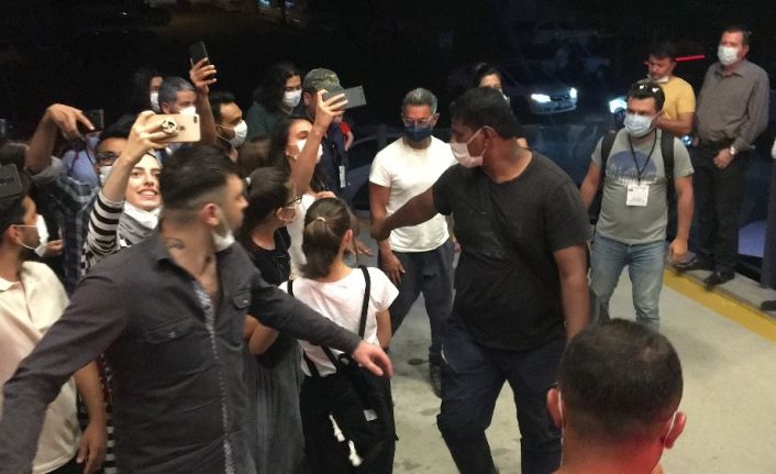 Ünlü aktör kaldığı otelin önüne gelen hayranlarıyla buluşarak fotoğraf çektirdi.