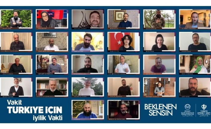 Türkiye Diyanet Vakfı gönüllüsü sanat ve kültür camiasından ünlü isimler, korona virüs tedbirleri kapsamında maddi anlamda zorluk yaşayan vatandaşlara yönelik Türkiye Diyanet Vakfı tarafından başlatılan Vakit Türkiye İçin İyilik Vakti kampanyasına destek oldu.