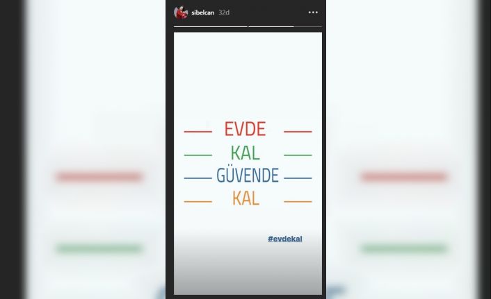 KORONA VİRÜSE KARŞI TAKİPÇİLERİNE SOSYAL MEDYA HESABI ÜZERİNDEN EVDE KAL ÇAĞRISI YAPAN ÜNLÜ ŞARKICI SİBEL CAN, ”TÜM İNSANLIK OLARAK ZOR BİR DÖNEMDEN GEÇİYORUZ. GÜZEL GÜNLERE HEP BİRLİKTE KAVUŞACAĞIZ. LÜTFEN SABIRLA EVDE KALALIM” İFADELERİNİ KULLANDI.