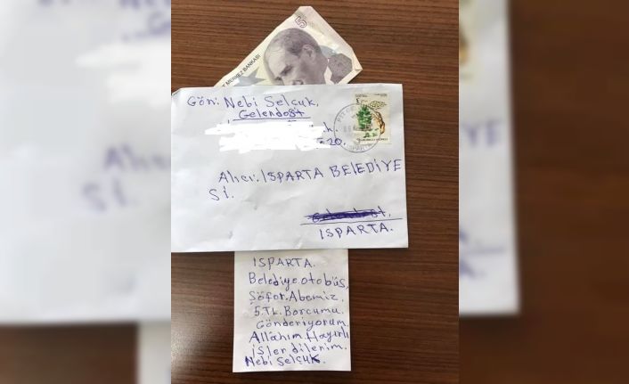 Selçuk, zarfın içerisine “Isparta belediye şoför abimiz 5 TL borcumu gönderiyorum. Allah’ım hayırlı işler dilerim” ifadelerinin yer aldığı bir de not yazdı.