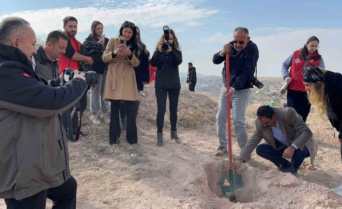 Nevşehir Valisi Ali Fidan daha sonra ağaç dikimi yapan gazetecileri görüntüledi. Gazetecilerin fotoğraf makinesini alan Vali Fidan ağaç diken gazetecilerin fotoğraflarını çekti.